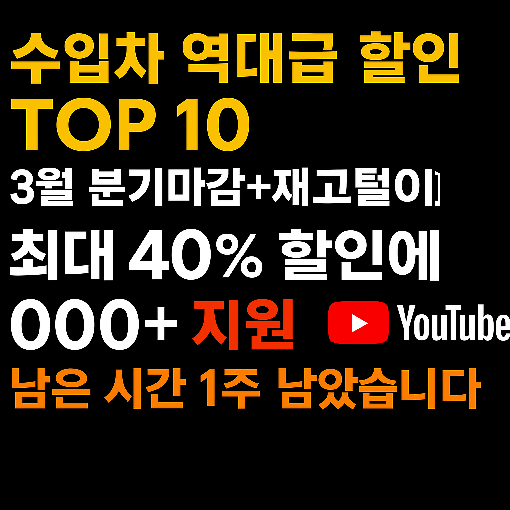 3월은 수입차 시장에서 ‘한 해 중 가장 큰 할인폭’을 자랑하는 시기입니다. 분기 마감과 재고 털이가 맞물리는 이 시점은 실제 계약 건수도 급격히 늘어나는 만큼, 현명한 소비자라면 반드시 체크해야 할 타이밍이죠. 특히 이번 3월은 전례 없이 강력한 할인율과 추가 혜택이 적용되며, 인기 수입차들이 무려 40%에 육박하는 할인율을 보이기도 했습니다.이번 포스팅에서는 단순히 할인율 기준이 아니라, 소비자 문의가 많은 인기 차종들을 중심으로 선별된 할인율 TOP 10 모델을 소개합니다. 단, 정확한 견적 및 재고 상황은 **네이버 카페 ‘수싸정’**을 통해 문의하셔야 하며, 본 글은 객관적인 정보 제공 목적임을 안내드립니다. TOP 10. BMW X6 40i M 스포츠기존 차량가 약 1억 360만원 → 할인 ..