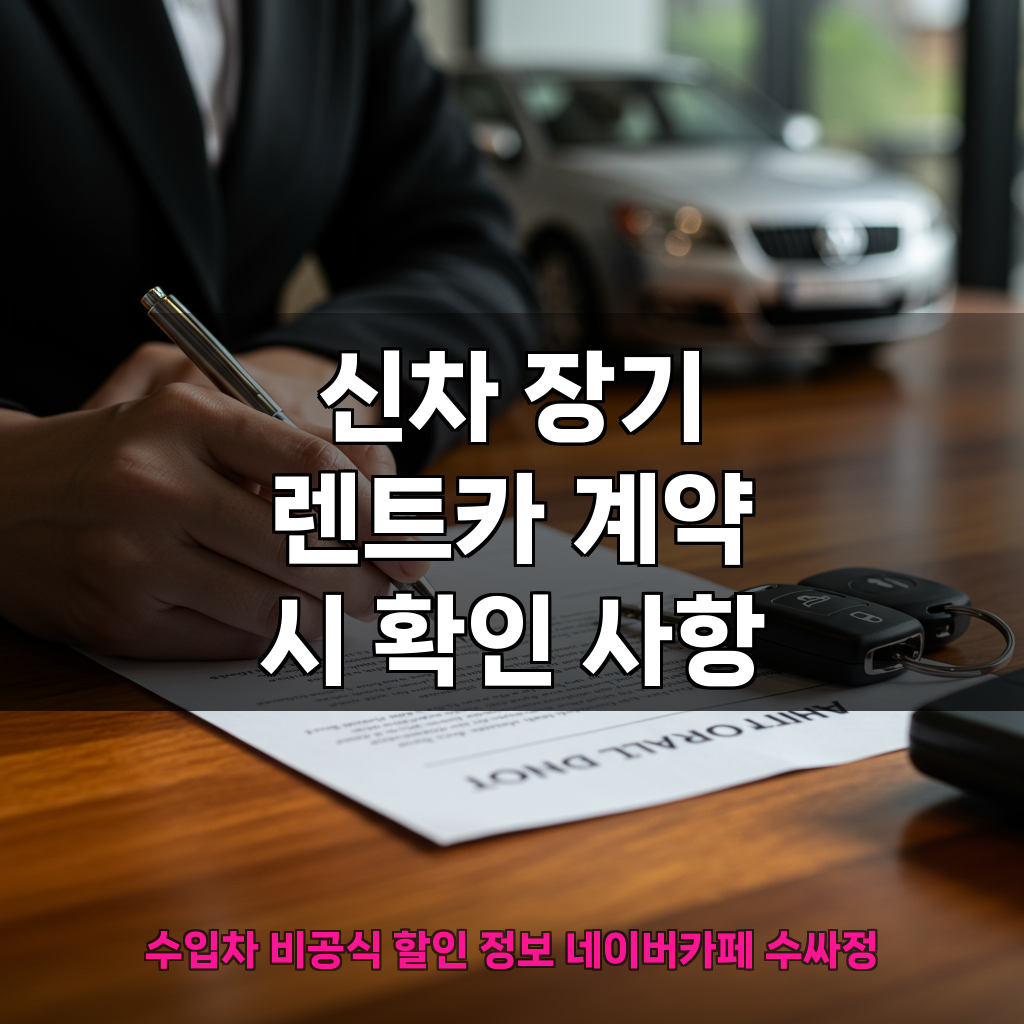 신차 장기 렌트카 계약을 진행할 때는 몇 가지 중요한 사항들을 꼼꼼히 확인해야 합니다. 첫째, 렌트료에 보험료, 정비 비용, 자동차세 등이 모두 포함되어 있는지 명확히 확인해야 합니다. 사업자의 경우 부가세 환급 가능 여부도 중요하게 검토해야 할 부분입니다. 사고 발생 시 렌트사의 사고 처리 절차와 지원 방식에 대해서도 미리 파악해 두는 것이 좋습니다. 또한, 계약 기간 중 주행 거리 제한을 초과했을 때의 요금 체계를 미리 확인하고, 렌트사마다 다른 계약 기간(36개월, 48개월, 60개월 등)에 따른 총 지불액을 비교 분석하는 것이 현명합니다.