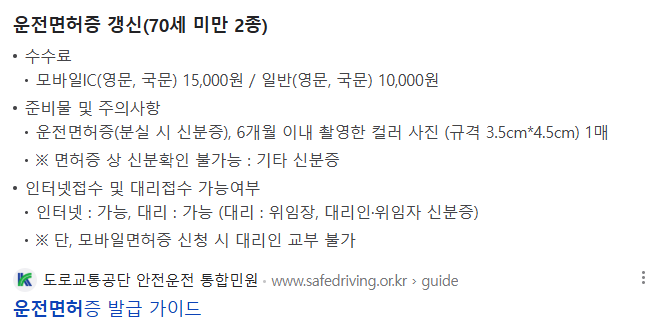 (기존 면허증 미반납 시 추가 수수료 발생할 수 있음)