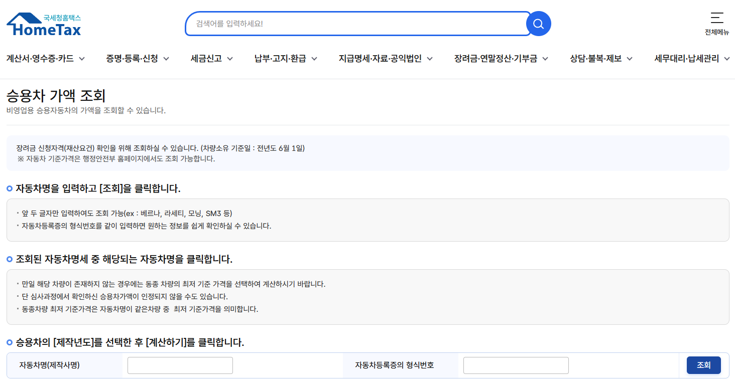 간혹 홈택스에서 차량 가액을 조회하려는 분들이 계신데요, 홈택스는 기본적으로 세금 관련 업무를 처리하는 곳입니다. 차량 가액을 직접적으로 '조회'하는 기능보다는 자동차 관련 세금(취득세, 등록세 등)을 산정할 때 필요한 '시가표준액' 또는 '과세표준액'을 간접적으로 확인할 수 있습니다.