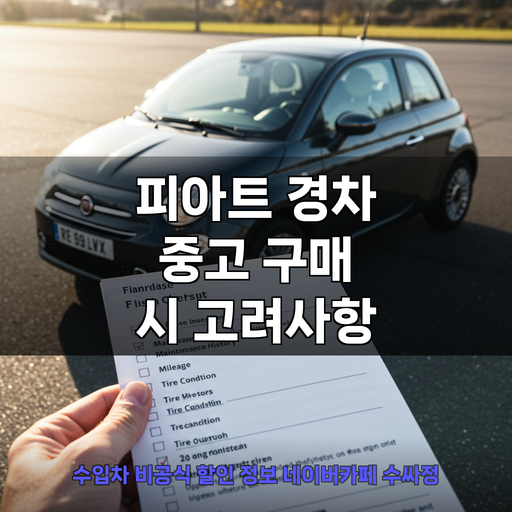 피아트 경차를 중고로 구매하려는 경우, 몇 가지 추가적인 고려사항이 있습니다. 중고차 시장에서는 차량의 연식, 주행 거리, 관리 상태, 사고 이력 등을 종합적으로 살펴봐야 합니다. 특히 피아트 경차의 경우, 독특한 디자인과 함께 특정 연비 수치에 대한 소비자들의 인식이 존재하기 때문에, 중고차 가격 또한 이러한 요소들을 반영하여 형성될 가능성이 높습니다. 따라서 합리적인 가격으로 좋은 상태의 차량을 구매하기 위해서는 꼼꼼한 차량 확인과 비교가 필수적입니다.