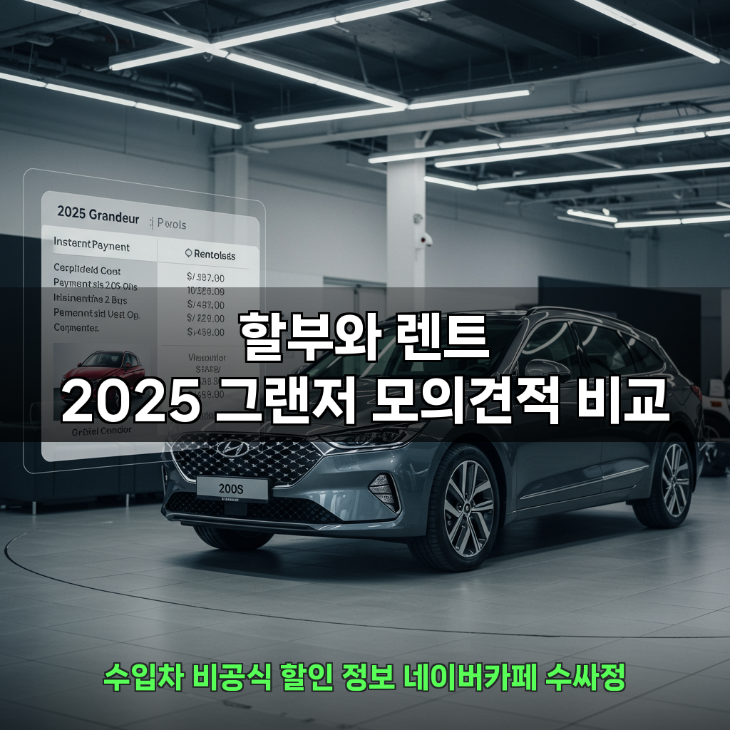 현재 그랜저 구매를 고민하고 있다면, 2025 그랜저 모의견적을 한 번쯤 진행해보는 것을 강력히 추천합니다. 초기 비용 0원, 보험 및 정비 포함, 그리고 세금까지 렌트사 명의로 처리되는 깔끔한 방식은 할부보다 훨씬 부담 없이 차량을 이용할 수 있게 합니다. 특히 풀옵션 사양까지 고려하는 분들에게는 더할 나위 없이 완벽한 선택이 될 것입니다. 현재 다양한 차종별 프로모션 혜택이 진행 중이므로, 이러한 기회를 놓치지 않도록 주의해야 합니다. 실시간 견적을 통해 가장 좋은 조건일 때 계약을 진행하는 것이 현명한 소비라고 할 수 있습니다.